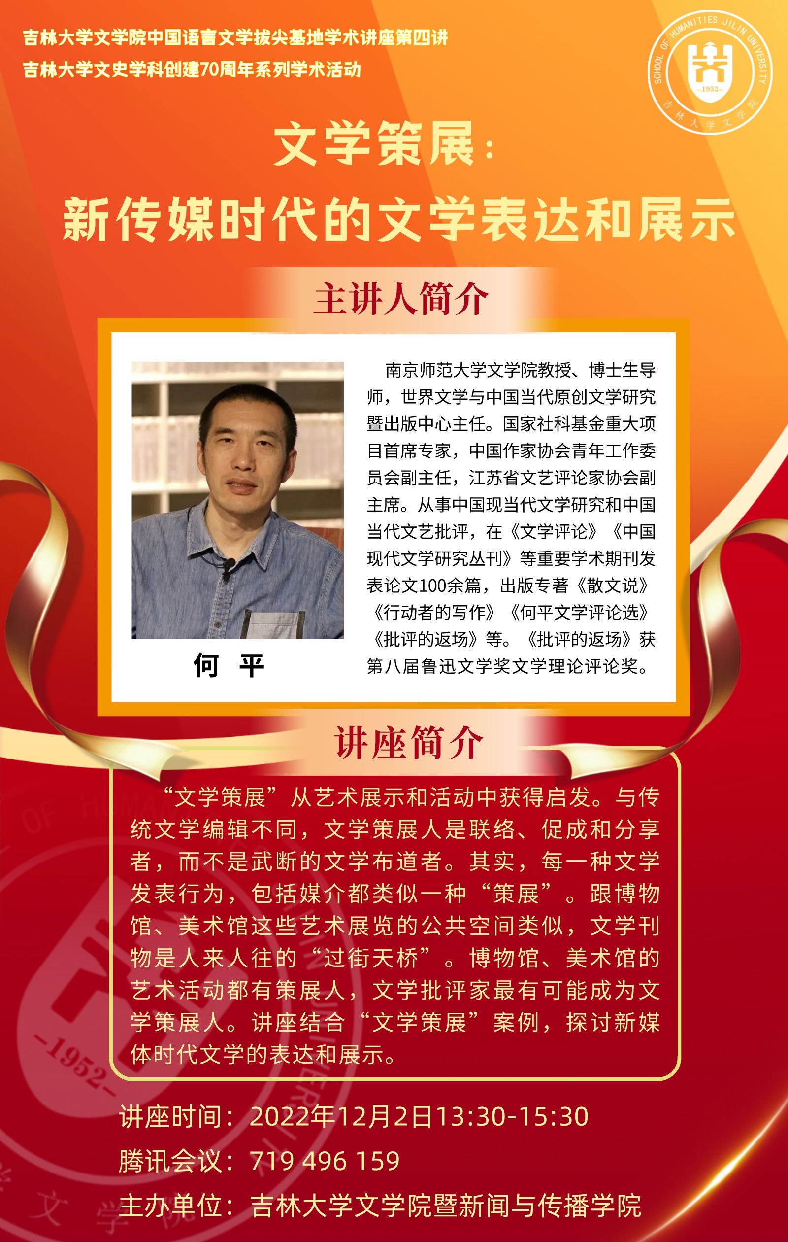 主讲人简介:何平,南京师范大学EMC易倍教授、博士生导师,世界文学与中国当代原创文学研究暨出版中心主任。国家社科基金重大项目首席专家,中国作家协会青年工作委员会副主任,江苏省文艺评论家协会副主席。从事中国现当代文学研究和中国当代文艺批评,在《文学评论》《中国现代文学研究丛刊》等重要学术期刊发表论文100余篇,出版专著《散文说》《行动者的写作》《何平文学评论选》《批评的返场》等。《批评的返场》获第八届鲁迅文学奖文学理论评论奖。