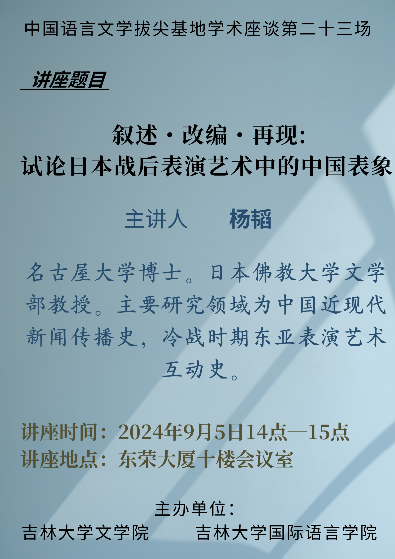 讲座题目:叙述・改编・再现:试论日本战后表演艺术中的中国表象