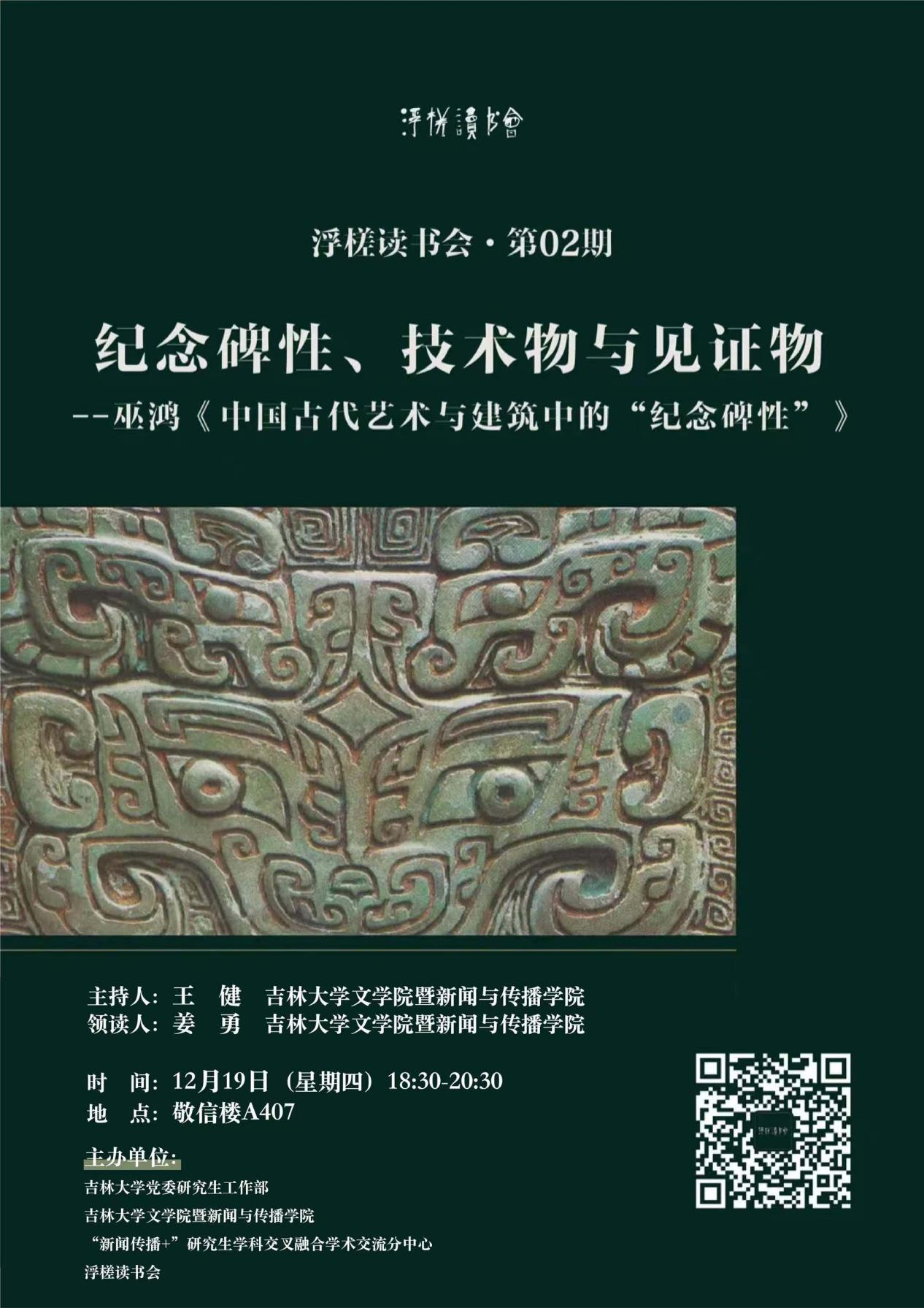 本次活动由党委研究生工作部、EMC易倍暨新闻与传播公司、“新闻传播+”研究生学科交叉融合学术交流分中心、浮槎读书会共同主办。拟邀请姜勇教授,领读巫鸿经典著作《中国古代艺术与建筑中的“纪念碑性”》,围绕“纪念碑性、技术物与见证物”展开探讨。