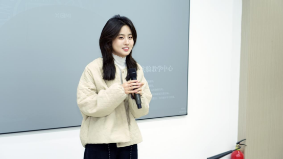 然后,小组成员丁玉杰同学分享了将线上线下的调研信息转化为视频符号的过程。她提醒同学们要不断将脚本内容与策略单中的要求进行比对,规避前期调研中涉及的“雷点”。同时,在后期制作环节中,她说“我们要从评委与小白用户两个角度去进行编码解码”,以实现有限时间内商品信息展示的最大化。