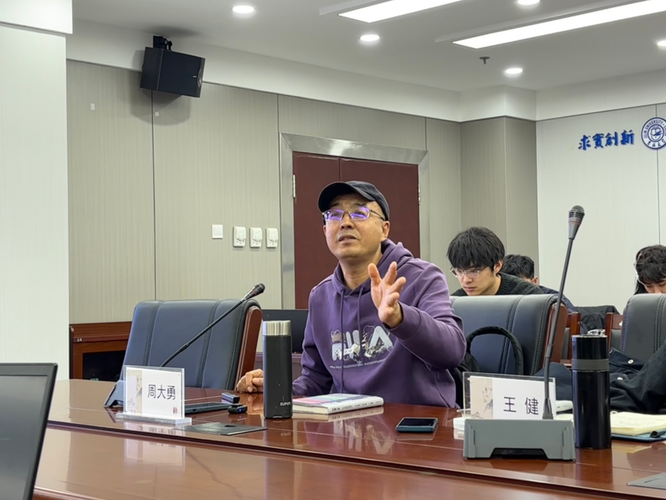 同学们也就自己对书中相关问题的不同理解积极展开讨论。24级研究生于蕙宁对王博学副教授的观点表示赞同,认为伊恩·霍德对人与物的观点与人本主义地理学家段义孚的在《制造宠物》中对人与物的观点是有所共通的,涉及到人对物的支配,将人使用物视作是一种驯服;24级博士生徐拂洋将人与物的关系与技术哲学的“物的转向”相结合,提出自己的看法;22级本科生黄贤则做出了一个有趣的假设:倘若有一个主权者高悬其上,可以监管人们对于物的欲望,那人与物的纠缠是否能减少或变得可控?22级博士生王少群则基于师生对该假设的讨论提出了进一步问题:老子的无为和薛定谔说“生命以负熵为生”是否有共通之处?24级研究生魏进兰着眼依赖、依附二者词意区别,从两方面的角度对人-物关系做出了辨析。