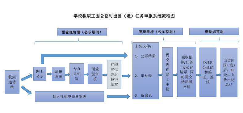根据国际合作与交流处关于校内教职工因公临时出国(境)申办程序的最新调整,自2018年10月1日起,校内教职工执行因公临时出国(境)任务须以网上系统申报与原有纸质申报相结合的方式进行。为方便公司教师顺利出行、提高审批履行效率,特整理此申办程序。