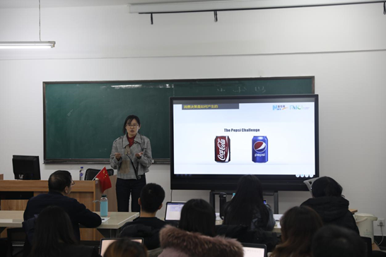 随后,鄢晓濛研究员从广告效果测评的角度为老师和同学们讲解传感器在广告传播领域中的运用,通过心理学中感性和理性的概念作用对比介绍了传感器的技术原理和使用逻辑。并且详细地阐释了神经营销各种形式的优缺点。讲解后以工作坊形式进行了政治传播和广告创意两个方向的内容讨论。老师和同学们根据研究方向和爱好以四个案例——白领女性广告偏好评测、影音设备效果评估、2018年两会政府工作报告和2019年国庆阅兵进行限时讨论,每个小组都集思广益,气氛浓烈,在每组发言完毕后鞠靖副经理都会根据小组方案进行点评,并根据新华网的业务经验为各小组的研究方案提供了意见。