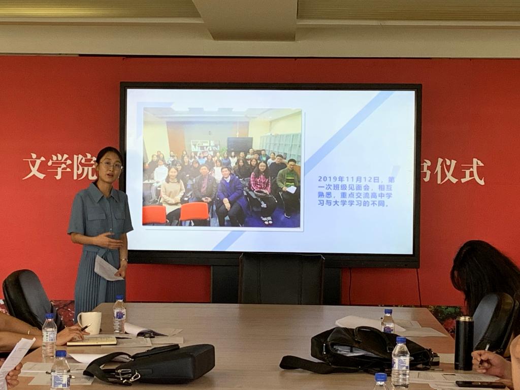 会上,26位本科生班主任依次述职,介绍其担任班主任期间的工作情况,各位本科生班主任围绕工作职责,从实际出发谈到工作中全面了解员工情况,关爱员工;协助辅导员做好对员工的教育和引导;教育引导员工做好生涯规划;开展学业辅导和学业帮扶;指导员工积极开展各类学术创新活动; 协助做好危机事件处置工作。各位本科生班主任在述职中还分享了举办班主任网络班会、组织专业实践活动、帮扶员工生活等方面的经验,深刻印证着本科生班主任制度是 “三全育人”综合改革建设的重要举措,彰显着班主任在老员工思想政治教育中的重要作用。