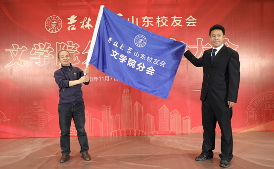 冉军副主任向首任会长杨忠授会旗