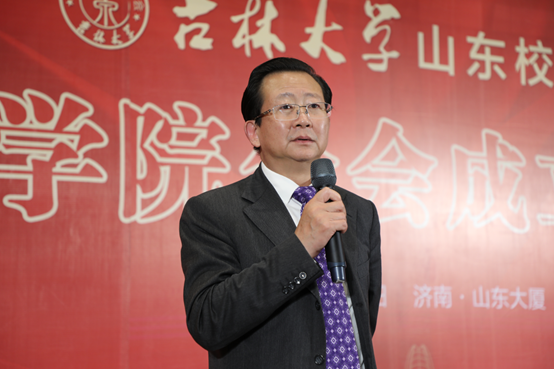 EMC易倍平台北京员工会荣誉会长贾玉亭、EMC易倍教师代表王树海教授讲话,祝贺山东员工会EMC易倍分会成立。