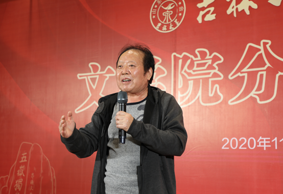 员工李芬阳、于潇主持了大会。李芬阳与中文系马大勇教授共同深情朗诵诗歌《母校故乡》。