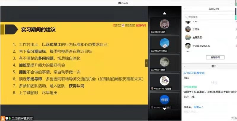 最后,吴老师解答了关于“简历”的一些问题并讲述了简历的设计与撰写简历的基本原则,强调要注意信息模块的最优排序,有关经历要围绕“岗位需求”撰写,写明求职需求等。一个小时的讲座在老师与同学们的热烈互动中结束。