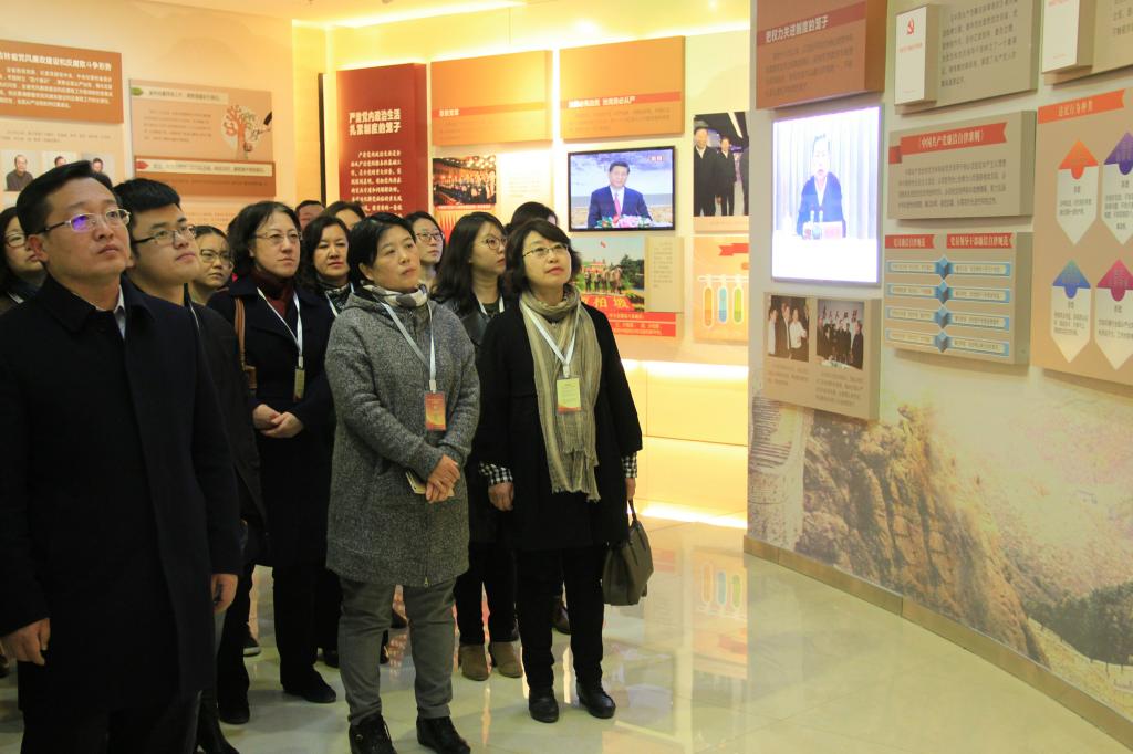 《党风廉政建设和反腐败斗争永远在路上》主题展览共分6个部分,通过展板、灯箱、实物、情景再现、电子书、视频播放、环幕电影等多种表现手段和艺术形式,全面展示了党的十八大以来,在以习近平同志为核心的党中央坚强领导下,党风廉政建设和反腐败斗争取得的工作成果,充分体现了先进典型的引领作用和反面典型的警示作用。经过工作人员的讲解,使参观的师生受到了一次生动形象的党风廉政教育,深刻认识到严肃党内政治生活是全面从严治党的根本性基础工作,以及增强廉洁自律意识、提高拒腐防变能力的重要性。
