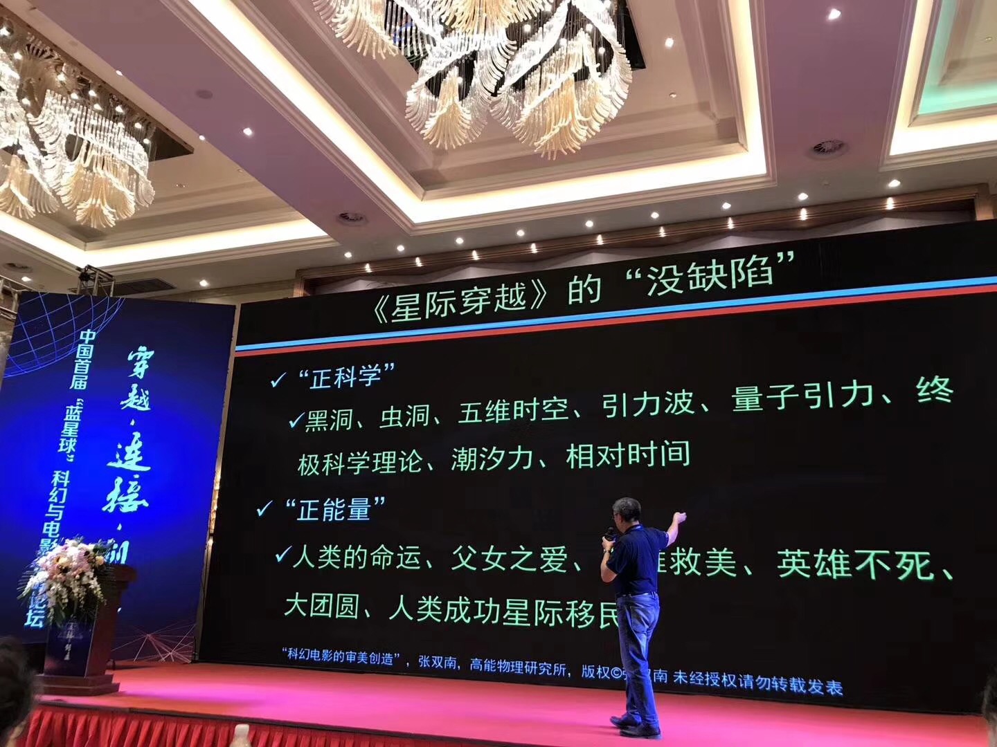 论坛于上午9时开始,此次论坛的第一部分是文学界、科学界及影视界的主题演讲。围绕科幻电影,从不同学科视角对其进行解读,深入浅出。其中著名科幻作家、第七届全球华语科幻星云奖金奖获得者江波认为当前的科幻电影可分为两类,一类是类似于神话传说的“神魔故事”,一类是以现代科技为幻想基础的“设计未来”型电影。中科院高能物理所研究员张双南教授从科学角度出发,提出了“科幻来源于科技,但是高于科技,科幻是对科技的审美创造”的论断。第四届、第六届全球华语科幻星云奖金奖获得者张冉用一句话总结了科幻是什么——科幻的诞生源于我们对世界的不知足,我们讨论科幻的时候,一定是用科学的精神解读这种幻想。