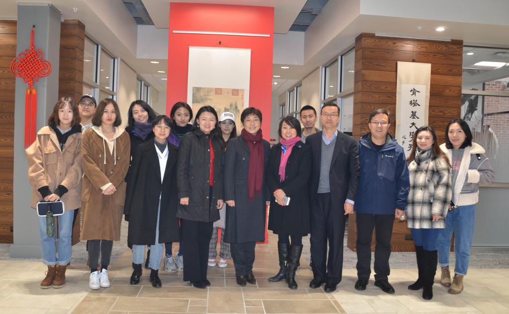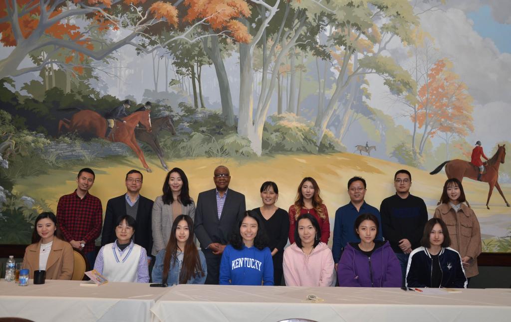 图06:中国驻美国大使馆公使级教育参赞杨新育(前排左五)、教育处二等秘书邹莹(前排左四),肯塔基大学孔子公司经理修华静教授(前排右五)等与EMC易倍平台新闻与传播公司师生合影。
