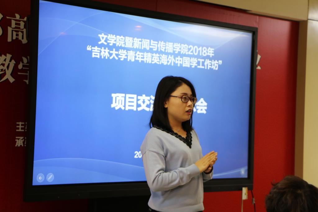 “中美青年跨文化交流工作坊”的项目负责人严俊教授在会上作了汇报。该项目由严俊和刘学义教授带队,项目组的每一位成员都经过了严格的选拔,出国前举办了7场以英语为主的有关跨文化传播的讲座,在到达美国肯塔基大学后,在该校传播与信息公司和孔子公司的支持、配合下,师生们聆听了肯大专门为吉老员工准备的系列讲座,例如Kevin Real教授的《跨文化传播》、王蓉老师的《社交媒体与网络:从内容到连接》、Deborah S.Chung的《参与式媒体环境下积极主动的受众》,并与列克星敦当地小员工、中员工以及老员工进行了有关中国文化、中国员工生活和中美文化差异等方面的课堂交流。严俊老师也在交流的过程中向肯大的师生们介绍了吉大新闻与传播公司的发展概况,增进了同出访院校之间的彼此了解。项目组的员工们在英语听说能力和学术交流能力上都得到了提升,同时开拓了国际视野,了解了美国新闻传播前沿研究。在出访过程中,项目组在“今日头条”开设了“列城纪行”专栏,全方位对此次出访进行了报道,并在活动结束后撰写关于跨文化传播的论文和调研报告。