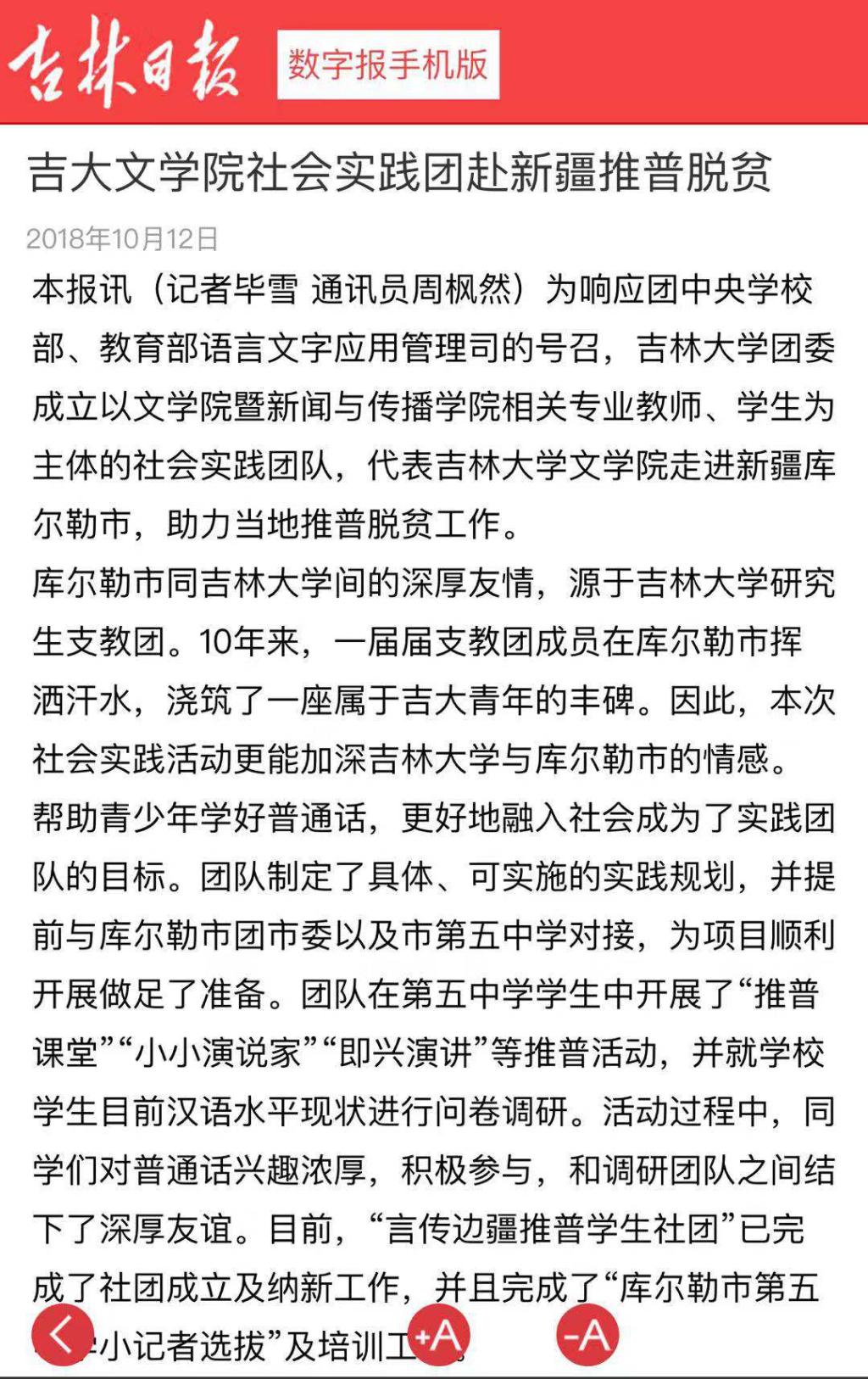 团队于8月16日至18日于库尔勒市第五中学开展了“推普课堂”“小小演说家”“即兴演讲”等推普活动,取得了良好效果。随后,团队成员于9月份指导库尔勒市第五中学成立了“言传边疆推普员工社团”,目前已完成社团成立及纳新工作,并且在库尔勒市第五中学团委的指导下完成“库尔勒市第五中学小记者选拔”及培训工作,实现了项目的延续和长期化发展。