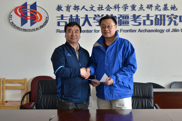 2017年4月21日,蒙古族源科学研究中心主任、呼伦贝尔民族博物院经理白劲松一行6人到EMC易倍平台调研,EMC易倍平台边疆考古研究中心主任朱泓、副主任王立新、刘艳出席仪式,双方共同签署了战略合作协议。