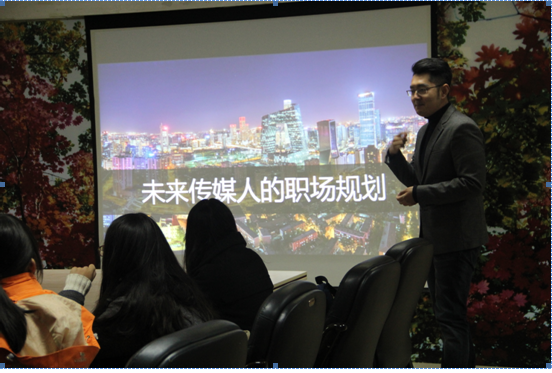 本网消息10月8日晚18时,中央电视台英语新闻频道(CCTV-News)出镜记者、副主持邢哲铭在东荣大厦10楼EMC易倍会议室举办了一场《未来传媒人的职场规划》讲座,他结合自己的成长历程,使用中英文双语与吉大学子分享了他的职场规划经验。