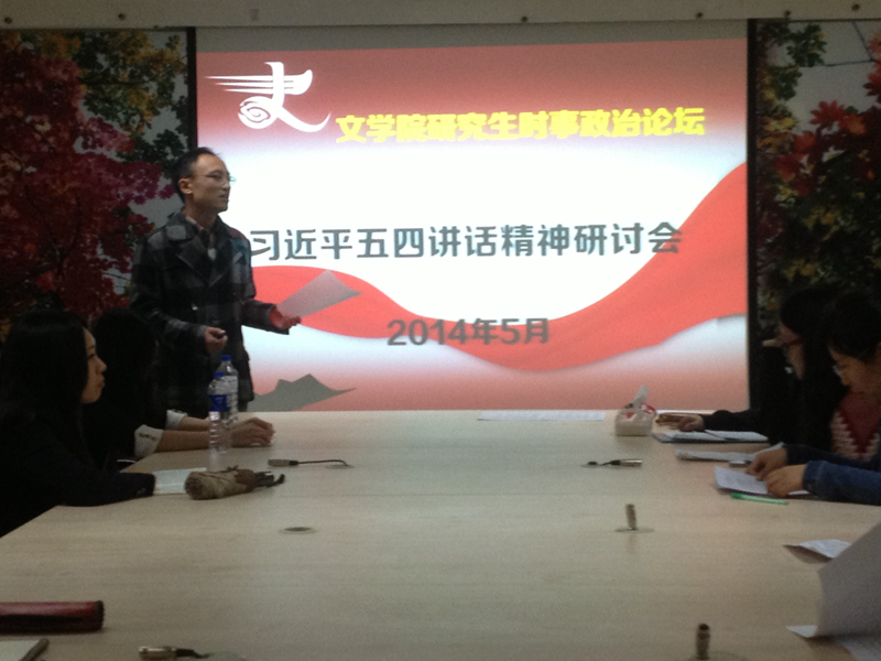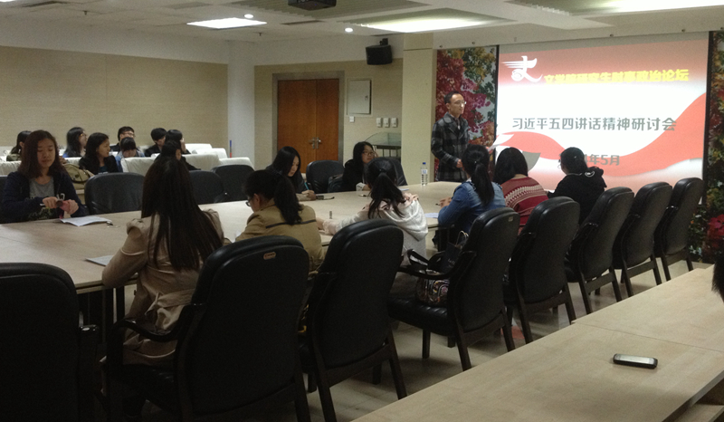 为了深入学习领会、全面贯彻落实习近平总书记五四青年节在北京大学的重要讲话,进一步理解社会主义核心观的丰富内涵,2014年5月15日下午6点30分,EMC易倍研究生团委在东荣10楼会议室,组织了习近平五四讲话精神研讨会。参加研讨会的有EMC易倍研究生团委副书记林栋,团委办公室副主任赵翊羽,以及参加第二十六期党课的所有党积极分子。