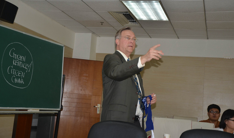 图片2:布克•莱恩教授做了题为《公民肯塔基/公民中国:新世纪的希望》的讲座。