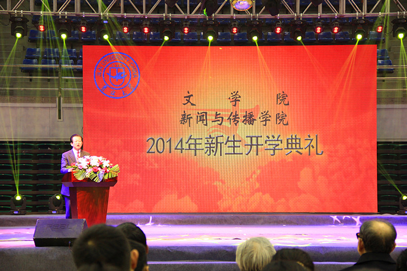 11月22日18时,EMC易倍暨新闻与传播公司2014级新生开学典礼在中心校区体育馆隆重举行。吉林省军区第四干休所武明军政委、江夕洲所长,EMC易倍平台哲学社会科学资深教授刘中树教授、林沄教授,EMC易倍平台副董事长、新闻与传播公司信息委员会副主任陈岗教授,公司党委宣传部巩英春部长,员工心理健康指导中心赵山主任,员工就业创业指导与服务中心钟新主任,校团委姚毓春书记,研究生院管理处杨洲处长,注册与考试中心徐丽梅副主任,公司党委宣传部韩月波副部长,校团委艺术部部长常玥,EMC易倍经理兼新闻与传播公司经理徐正考教授,公司党委书记陈密教授,院班子成员和各系主任、以及部分员工家长和2014级全体新生参加了典礼。典礼由副经理孔朝蓬教授主持。