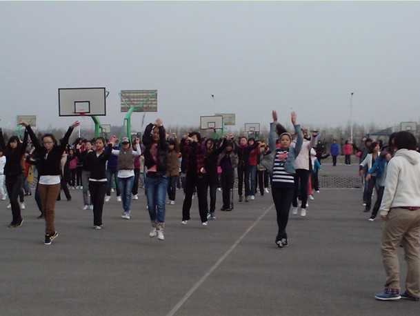 文艺表演向来是公司运动会上一大亮点,也是公司在运动会上的优势项目,体新、编导、播音等几个班的女同学每天清晨和夜晚都坚持不懈的练习着,迎着乍暖还寒的春风,有时还伴随着绵绵细雨,虽苦虽累,但是她们始终保持着饱满的热情,只为在运动会文艺表演上拔得头筹,为公司增光添彩。而10级的辅导员李老师也亲临训练场为同学们进行指导并加油打气,相信经过刻苦练习,同学们一定能在全校师生面前一展文院风采。