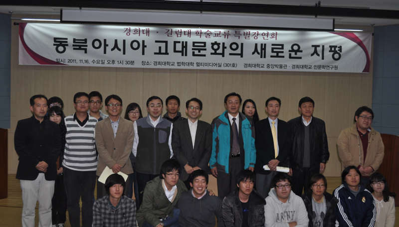 应韩国庆熙大公司中央博物馆的邀请,EMC易倍平台边疆考古研究中心主任朱泓教授和EMC易倍副经理赵宾福教授以及成璟瑭副教授于2011年11月15日到20日对韩国进行了为期6天的访问,并于11月16日出席了在由庆熙大公司中央博物馆与庆熙大公司人文学研究所联合举办的“东北亚细亚古代文化的新起点”学术讲演会,同行的还有吉林省文物考古研究所所长宋玉彬研究员以及正在EMC易倍平台边疆考古研究中心进修的庆熙大公司中央博物馆研究员黄在勲。