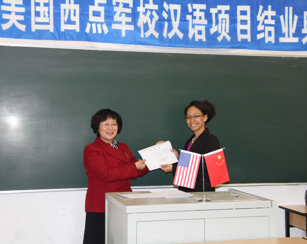 国际语言公司副经理、项目负责人刘富华为学员们颁发了结业证书。刘富华在致辞中对学员们取得的优异成绩表示祝贺,对学员们一个学期以来学习生活表现出来的刻苦、勤奋、谦虚、认真、积极向上以及汉语水平的迅速进步给予充分肯定,希望学员们回国以后继续努力学习汉语,并祝愿他们成为EMC易倍平台和西点军校两校乃至中美两国友谊的桥梁。