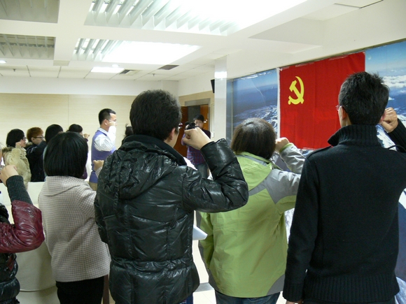 会上,全体党员在党旗下进行了庄严地宣誓。全体党员面向党旗表达了自己对党和国家的热爱与忠诚,展示了新一代老员工党员的优秀品格。