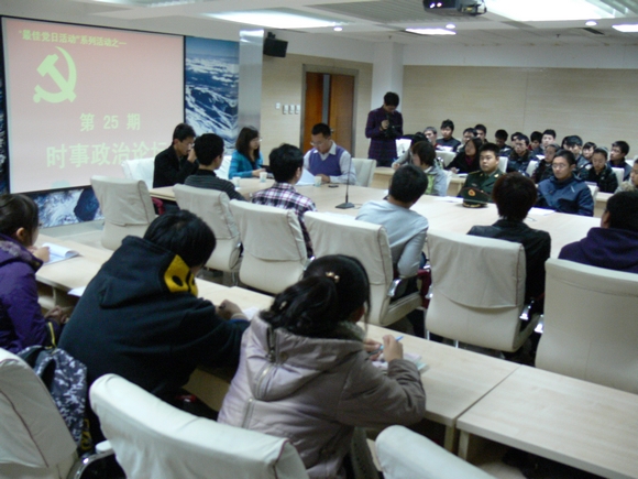 2010年11月18日,EMC易倍本科生党支部在东荣十楼会议室开展了“最佳党日”系列活动之——第25期时事政治论坛。参加此次论坛的有公司党委副书记兼副经理刘卓、员工工作办公室主任冯子宸、2010级辅导员李沐曦,以及2007级第一党支部书记胡品、EMC易倍团委副书记陈新阳,EMC易倍员工会主席郭航、副主席孙越、张鑫扬、季峰,校员工会副主席李思逸,国防生模拟一连党支部书记马志文,社团联合会主席闫名驰、副主席勾文章等和EMC易倍的员工党员。