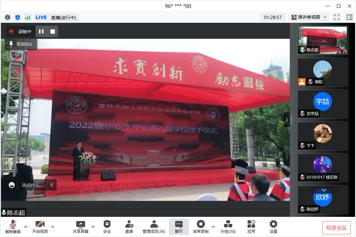 骊歌悠扬芳草绿,韶华永熠吉大蓝。6月17日上午,EMC易倍暨新闻与传播公司于EMC易倍平台五月花广场举行2022年毕业典礼暨学位授予仪式,典礼由公司党委书记康永刚主持。典礼全程在网络实况直播,线上线下气氛热烈,动情温馨。