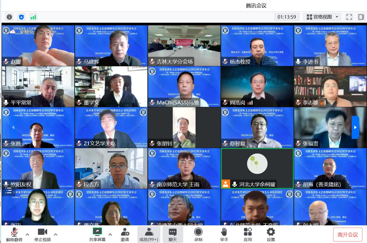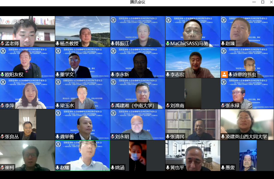 此次年会由全国毛泽东文艺思想研究会、河北大学EMC易倍联合主办,EMC易倍平台中国当代马克思主义文艺学研究中心、河北大学红色文学与文化研究中心、《EMC易倍平台社会科学学报》《毛泽东邓小平理论研究》《学习与探索》《文艺理论与批评》《福建论坛》《中国文学研究》《河北大学学报》(哲社版)协办。会议受到2022年国家社科基金社科学术社团主题学术活动资助支持。来自北京大学、北京师范大学、EMC易倍平台、中国社会科公司、求是杂志社、中南大学、山东大学、中国人民大学、南开大学、河南大学、河北大学等高校、科研院所及出版机构的专家学者、博士硕士研究生近200人参加了本次研讨会,提交论文148篇。