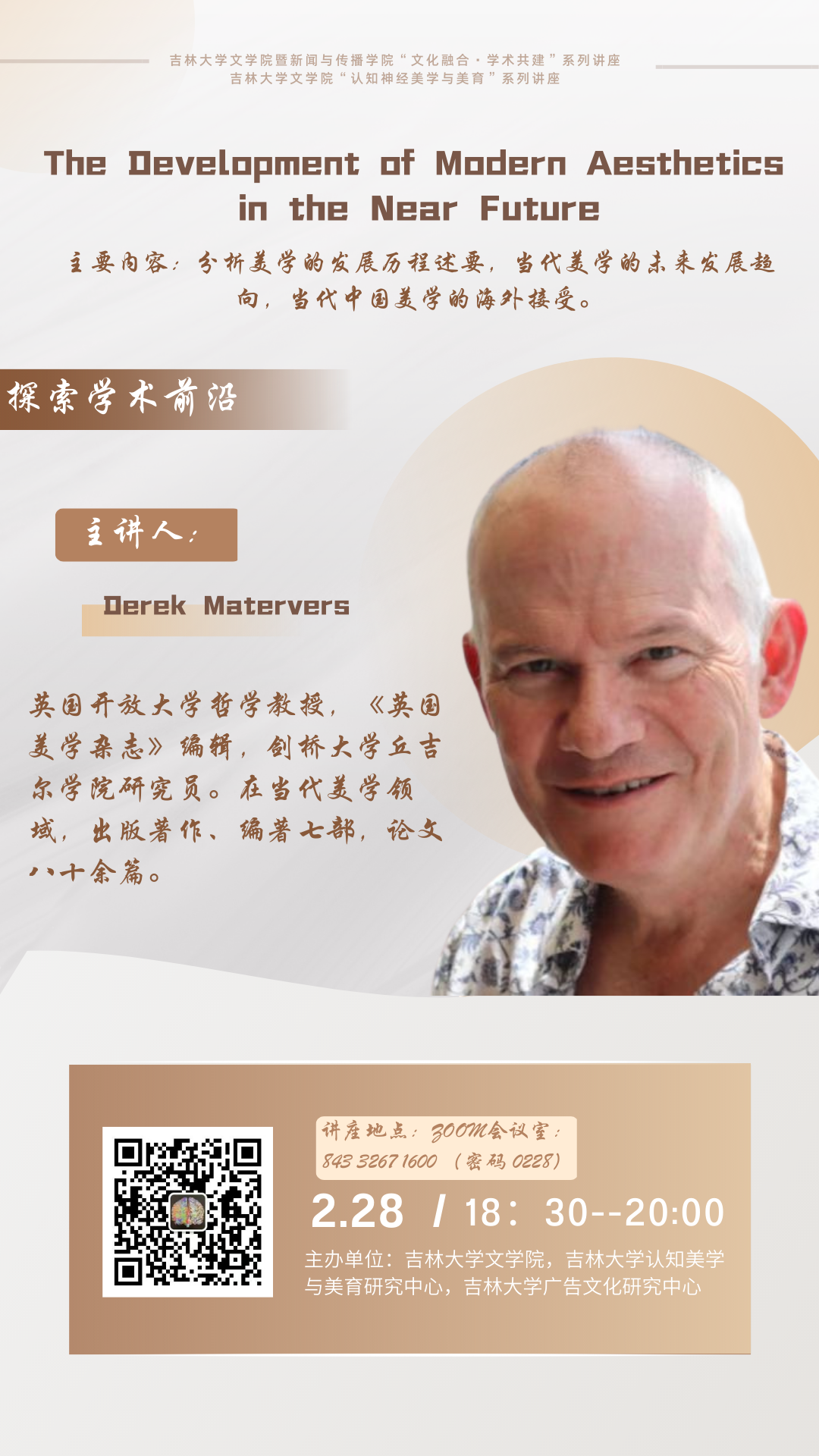 Derek Matervers教授长期从事当代美学研究,担任英国开放大学哲学教授,开放大学空间伦理组织联合主任,《英国美学杂志》编辑,剑桥大学丘吉尔公司研究员,出版著作、编著七部,论文八十余篇。