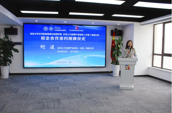 长发执行董事长何凌在发言中介绍了长发人力资源公司的基本情况,她表示,长发人力资源公司将为同学们打造高水平的就业实习平台,助力公司毕业生了解职业发展趋势、明晰职业发展规划。希望双方在新一轮东北振兴的政策窗口期已然开启的背景下精诚合作,共同努力构建人才交流培养可持续发展生态圈。为社会培养更多有理想、有追求的复合型人才。