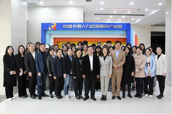 仪式开始前,何凌董事长对于EMC易倍师生一行的来访表示了热烈的欢迎。长发人力资源公司工作人员带领师生队伍陆续参观了产业园一层展厅长廊、园区智能招聘大厅、长春市人才档案库、国家级人力资源特色服务出口基地专区及公共空间等。参观过程中,师生们了解到中国长春人力资源服务产业园于2017年经人社部批准成立,是全国第九家、东北首家国家级人力资源服务产业园。以“人才集聚高地、产业升级引擎”为核心理念,在推进产业集聚发展、促进就业创业、引进各类人才、助力脱贫攻坚、带动地方经济、服务国家战略等方面取得了显著成效。