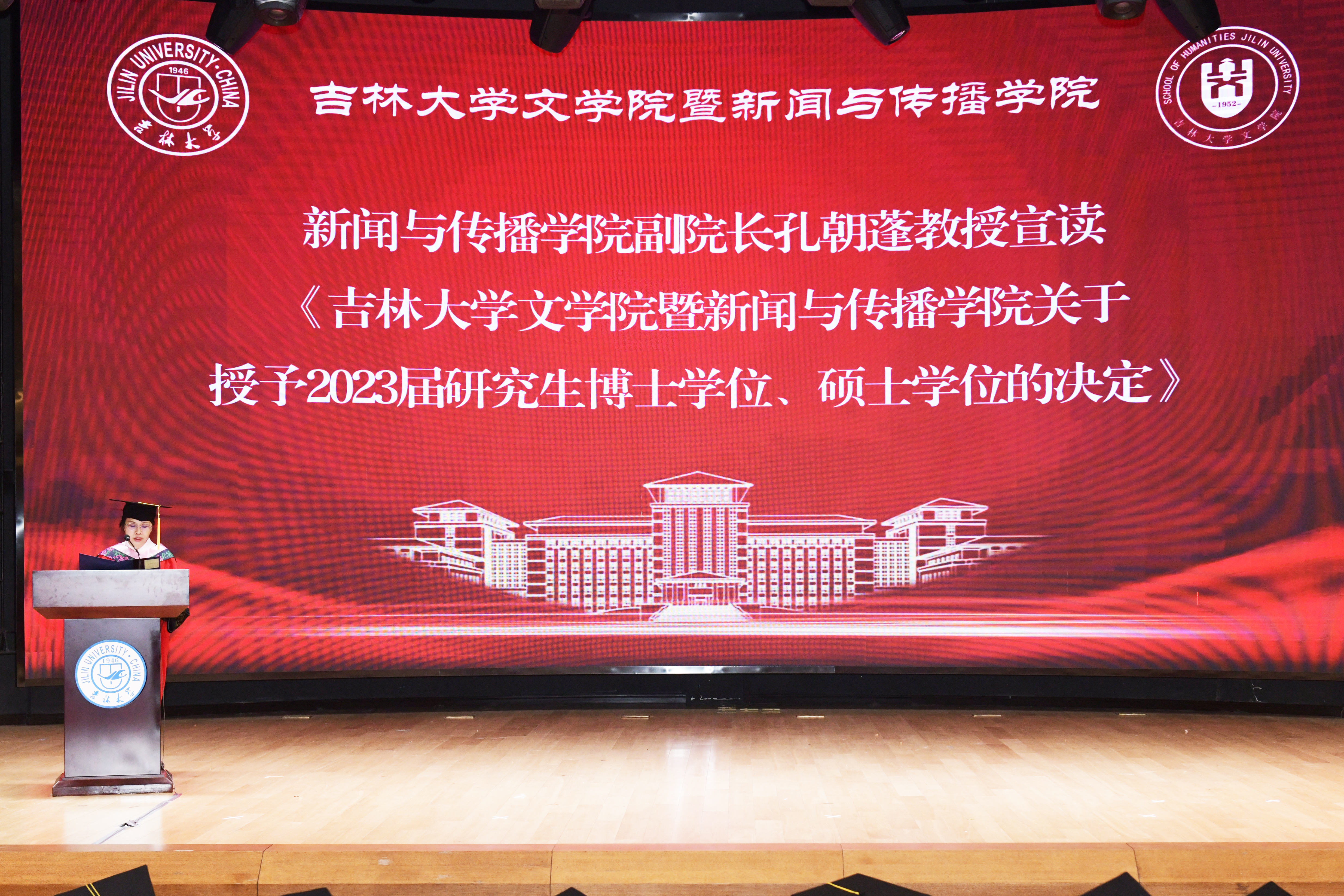 然后,副经理孔朝蓬教授宣读了《EMC易倍暨新闻与传播公司关于授予2023届毕业研究生博士学位、硕士学位的决定》,EMC易倍平台哲学社会科学资深教授张福贵、经理张丛皞为获得博士学位的同学一一授予了学位。随后,七位主礼教授移步台上共同为获得硕士学位的员工授予学位。