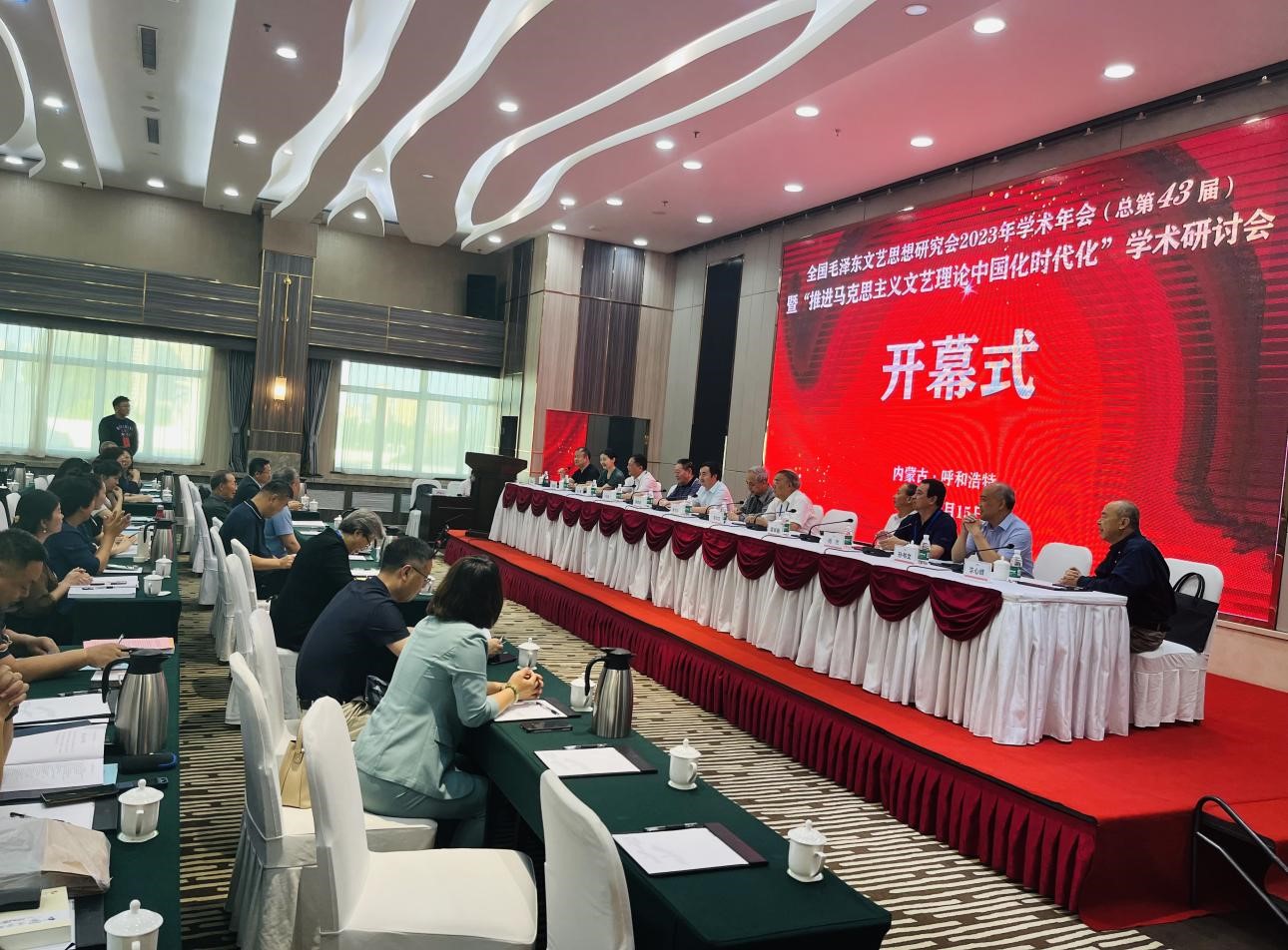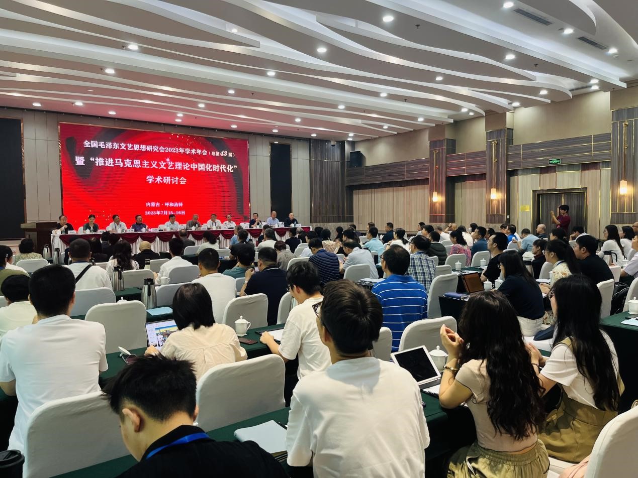 值毛泽东同志诞辰130周年之际,全国毛泽东文艺思想研究会2023年学术年会(总第43届)暨“推进马克思主义文艺理论中国化时代化”学术研讨会于7月15日至16日在内蒙古自治区呼和浩特市召开。会议由全国毛泽东文艺思想研究会与内蒙古财经大学人EMC易倍联合主办,EMC易倍平台中国当代马克思主义文艺学研究中心、《EMC易倍平台社会科学学报》《文艺理论与批评》《学习与探索》《毛泽东邓小平理论研究》《福建论坛》《中国文学研究》《华夏文化论坛》协办。来自北京大学、中国社科院、中国艺术研究院、上海社科院、中国传媒大学、山东大学、山东师范大学、中南民族大学、武汉大学、EMC易倍平台等高校及科研机构的一百余位专家学者出席了会议。