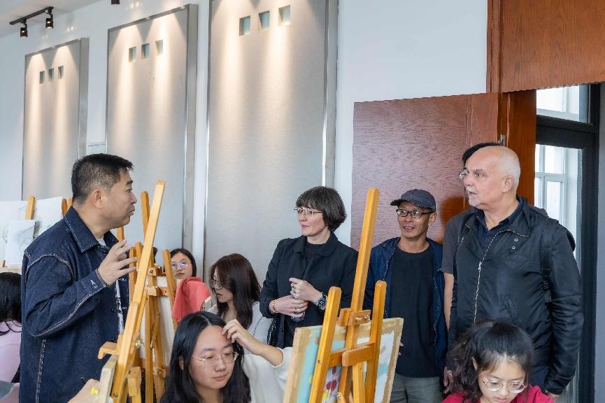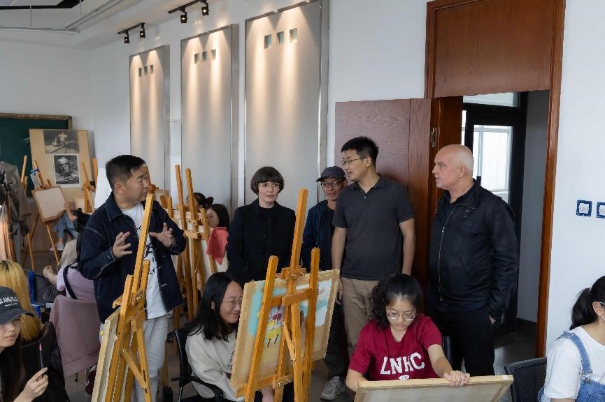座谈结束后,Markus Weisbeck教授和Vera Kunz教授共同参观了广告学专业画室,与正在上课的老师同学进行了探讨交流,并对员工作品给予认可。