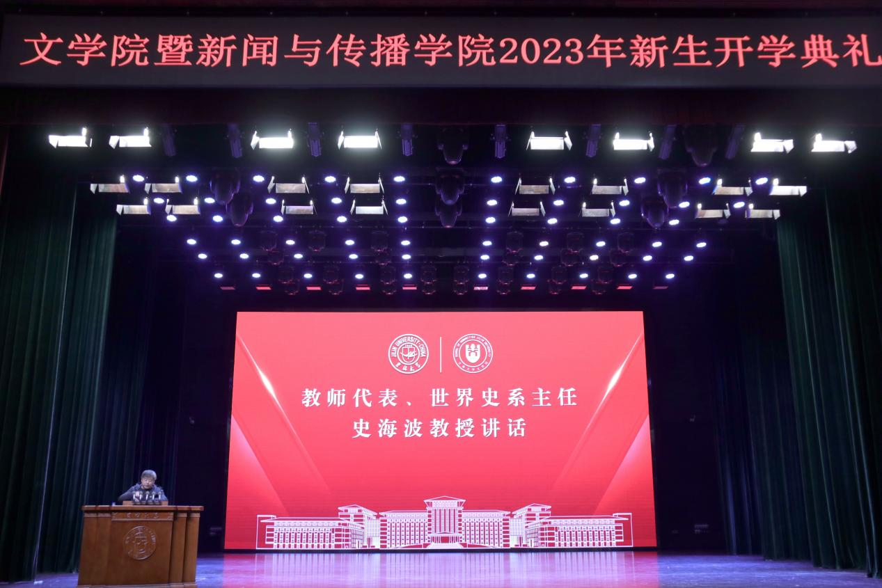 随后,公司党委书记霍志刚为2023级本科生班主任老师颁发聘书。接着,公司教师代表、世界史系主任史海波教授讲话,史教授以幽默恳切的话语建议同学们规律作息、锻炼身体,“野蛮其体魄,文明其精神”,也要扎根专业、梳理总结,用专业知识武装头脑,适当扩展接触不同学科领域知识,锤炼更为严谨的知识体系,传承人文关怀。