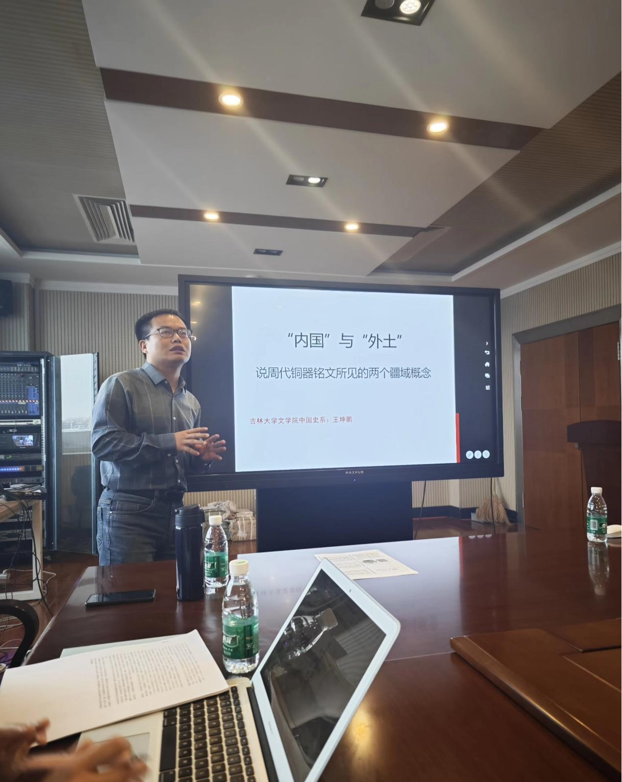 EMC易倍平台“励新优秀青年教师”培养计划入选者、中国史系王坤鹏副教授作了题为“‘内国’与‘外土’——说周代铜器铭文所见的两个疆域概念”的学术报告。在报告中,王坤鹏副教授从周代青铜器彔卣与戎生编钟铭文中出现的“内国”与“外土”这两个概念出发,仔细辨析了概念产生的政治与社会背景,深入讨论了其具体内涵,并进一步谈到周代国家的疆域形态与疆域观念等重要问题。在评议与讨论环节,李佳教授指出,报告结合青铜器铭文,针对西周国家的疆域问题提出了新观点,对其他断代问题也有一定的启发。陶莎副教授指出,报告题目涉及早期中国历史地理问题,对“土”等概念的探析比较深入,也有助于五服制等问题的探讨。吴翔宇老师指出,报告所选取的史料集中在西周中期,主要涉及军事方面,仍存在进一步扩充的空间,辽金史研究中也有相似的研究课题可以借鉴。