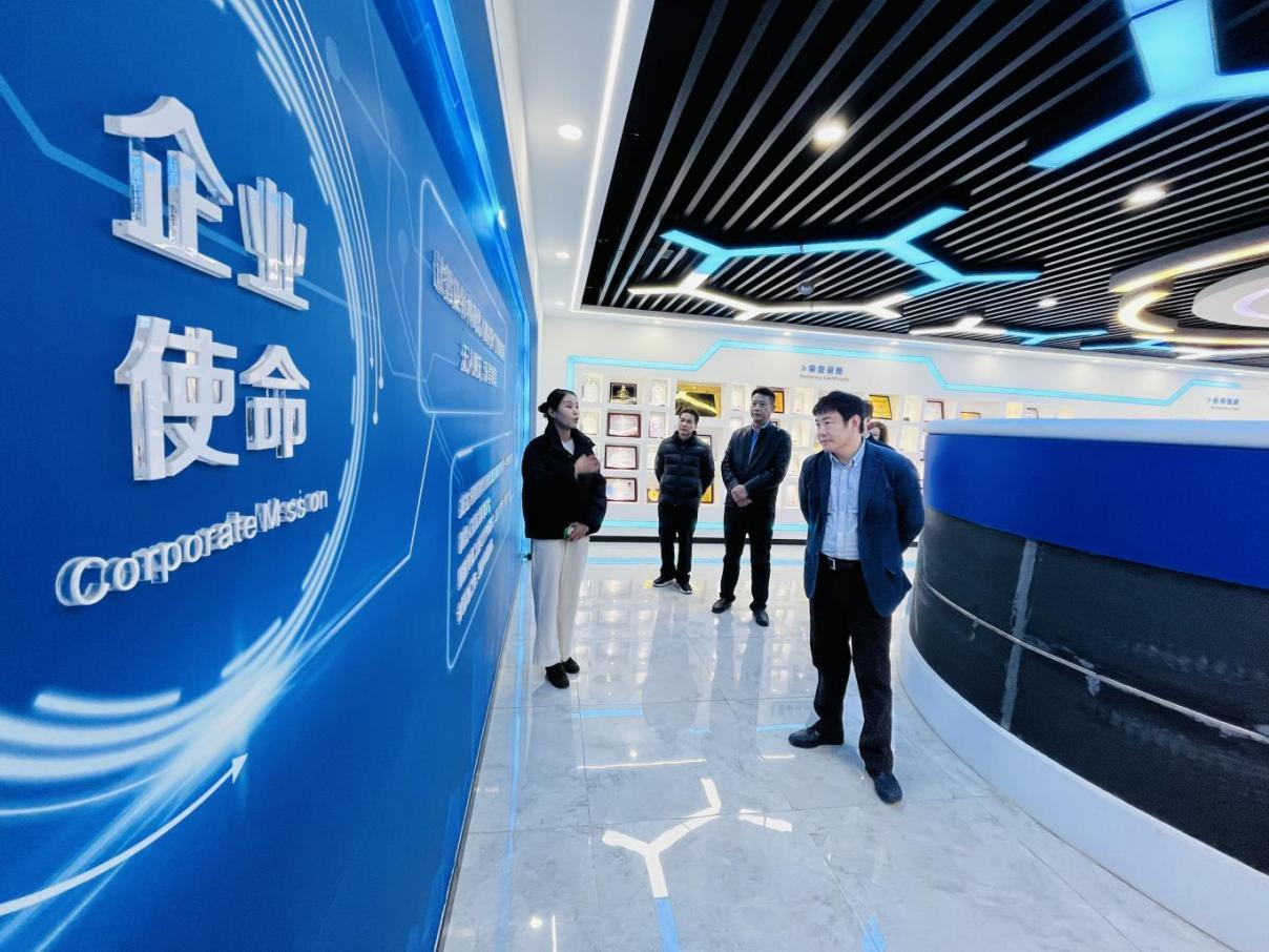 张丛皞一行在博清公司副总经理王道平等人的陪同下,认真参观了博清公司的党建展厅,听取了公司党建情况、公司价值观、使命愿景、企业文化、团队建设、公司产品等情况的介绍。