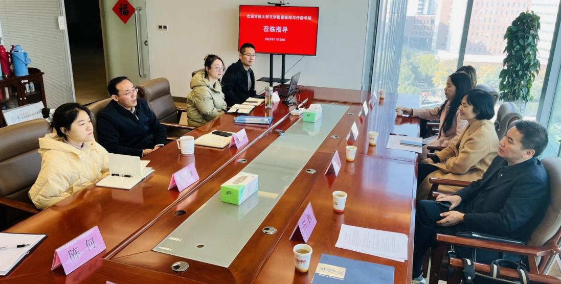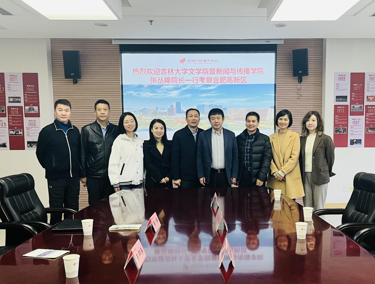 在安徽中广传播公司,总经理唐兴年就中广传播基本情况及“睛彩访谈融媒体会客厅”和“中广5G鉴证平台”工作做了介绍,表示公司在宣传策划、活动执行、播音主持这块人才很缺,欢迎吉老员工到公司进行实习实践。