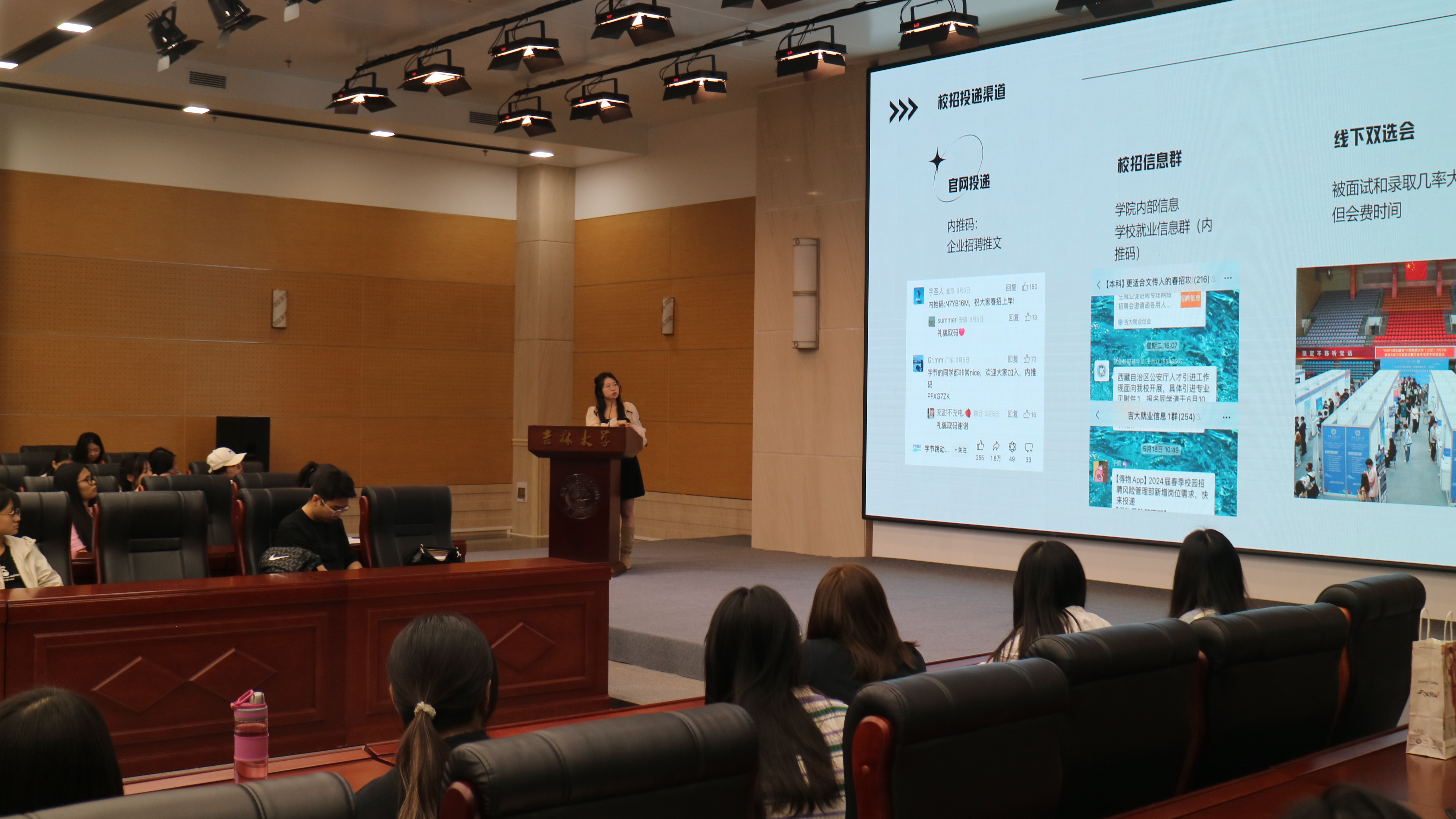严俊教授向在场师生表明了召开本次会议的初衷:“希望能够通过面对面的双向探讨、互动交流的形式,分享应届毕业生在保研考研,以及就业方面的成功经验,帮助同学们解决遇到的实际难题,提高保研考研和就业的成功率。”