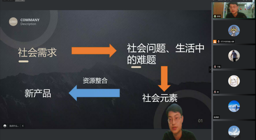 第三位主讲人,2018级播音与主持专业本科生杨子安,主要选择从“要不要创业”这个问题上为同学们分析老员工创业的利与弊。首先介绍了自己在创业过程中的经历,为同学们分析了“要不要创业”这个问题。同学们应当先明确自己的能力更适合探索何种领域,再判断自己应当参与到就业还是创业两种未来里。除此之外,同学们也应当充分意识到员工创业会遇到的种种问题与困境,要拿出勇气与毅力面对创业中的种种不可抗力影响与后果,建议同学们在明确自己的目标与状况后再参与到创业浪潮之中。
