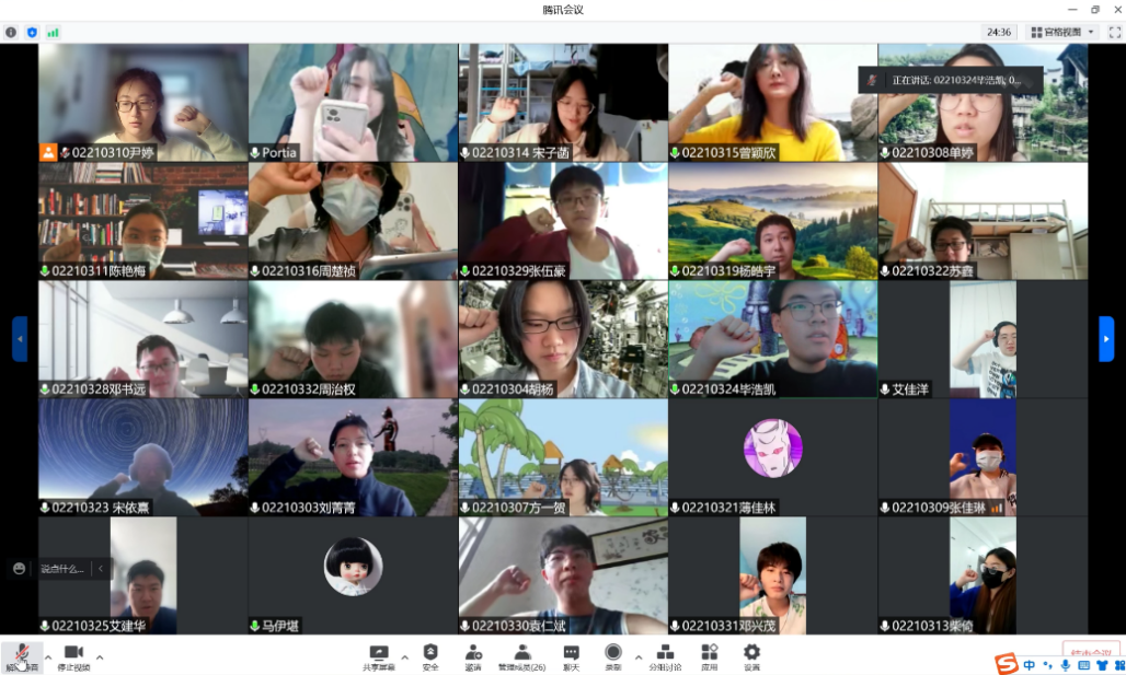 新闻传播学类2021级团支部5月团日活动通过线上方式进行。全体团员同学在两位团支书的带领下,通过腾讯会议,共同重温了入团誓词,并学习了习近平总书记在中国人民大学的重要讲话精神以及对青年的寄语,共同庆祝了共青团成立100周年。同学们参与积极度高,深切体会到了习近平总书记对青年老员工的殷切期望。活动首先由5位优秀团员代表领誓,全体团员重温了入团誓词,回忆入团初心。宣誓结束后,大家又共同交流学习了习近平总书记的重要讲话精神以及对青年的寄语。本次团日活动,充分体现了每个同学的热情,调动了同学们的融入集体活动的积极性。同学们热情澎湃,积极响应团组织的号召,遵守防疫规定,这充分体现了同学们的团结意识和强有力的凝聚力。
