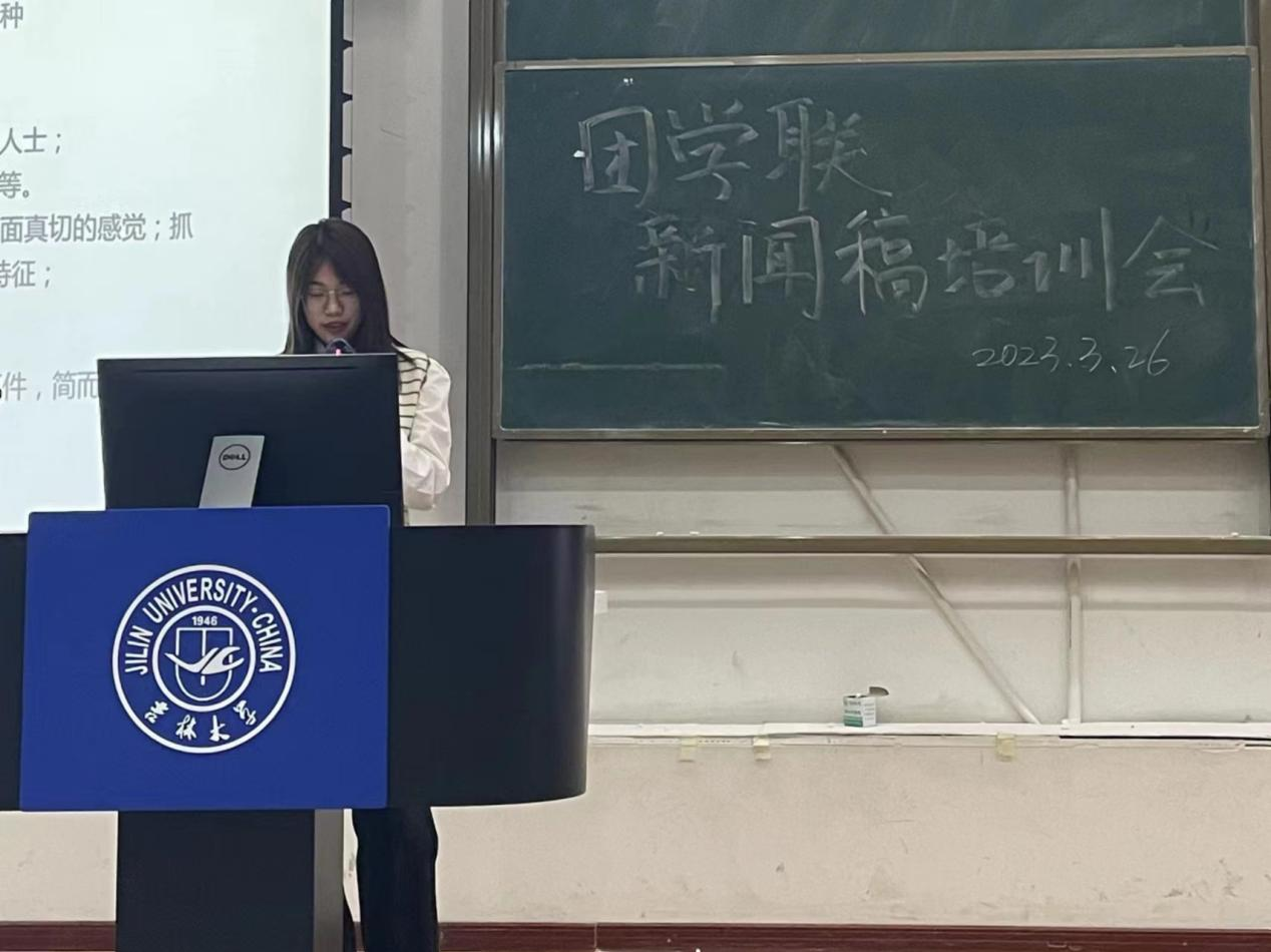 讲解完成后,培训会进入实战训练环节。同学们要于现场写一篇新闻通讯稿,以此来巩固会上所学内容,大家均认真、热情地完成了此次写作任务。随后,陈实同学在同学们提交的新闻稿中选择了几篇作品加以点评,同学们收获颇丰。