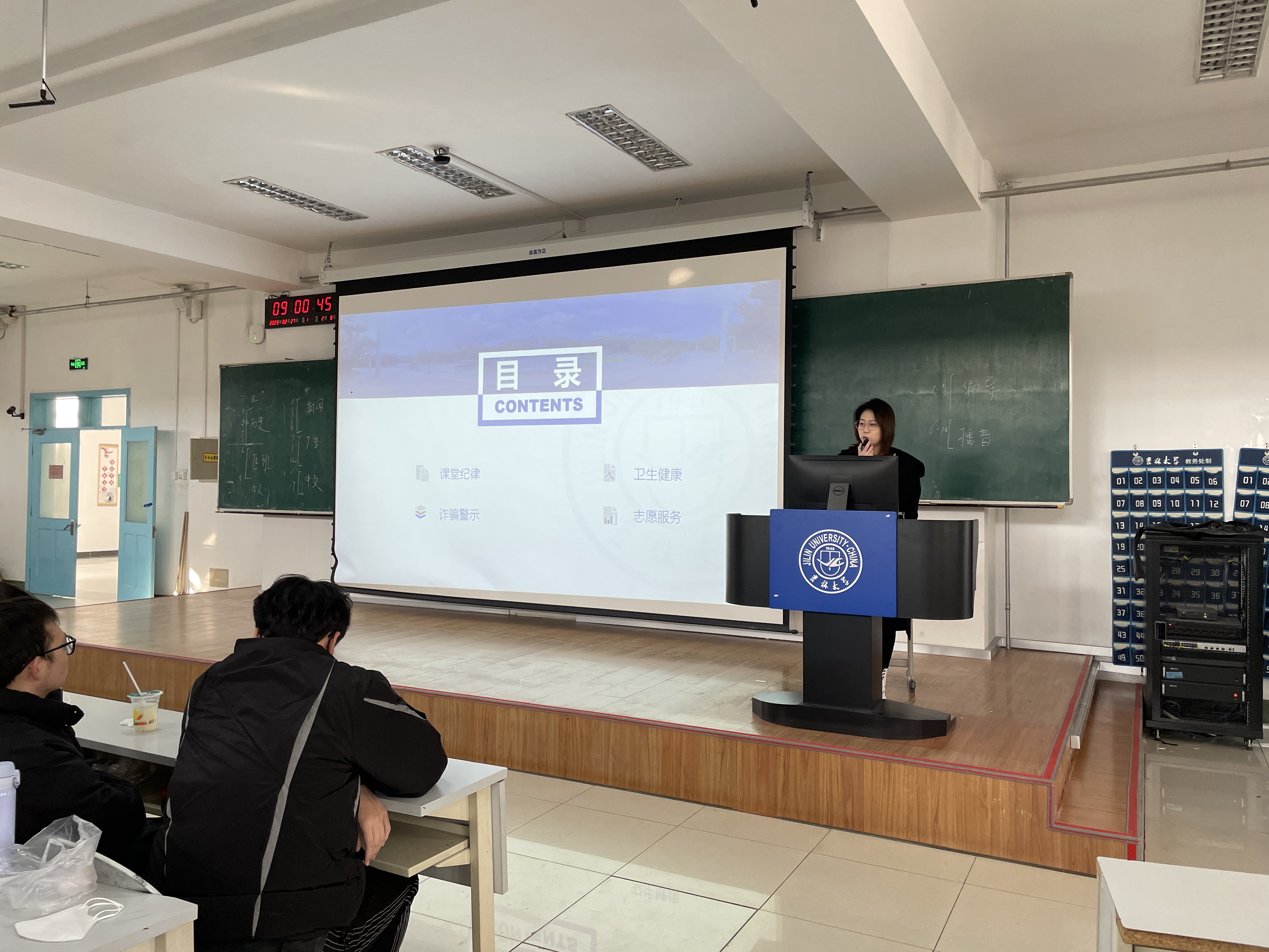 会议包含以下几个方面:第一,严肃课堂纪律。袁老师宣读了《EMC易倍平台本科员工违纪处分规定》并强调了EMC易倍暨新闻与传播公司对课堂纪律的要求,明确了违反纪律的严重后果,提醒同学们劳逸结合、努力学习。第二,重视卫生健康。春季是传染性疾病的多发季节,袁老师提醒同学们注意关注自己的健康状况,早发现,早治疗,保持寝室环境的整洁,不使用违规电器,勤通风。第三,严防电信诈骗。袁老师提示大家注意自己的人身和财产安全,不轻易透露自己及家人的个人信息,收到有异议的信息时要保持警惕,及时核实。第四,介绍志愿时长组成。袁老师向大家介绍了志愿服务时长的计算考评办法,提醒大家积极参与有意义、有质量的志愿服务活动,获取志愿服务时长。