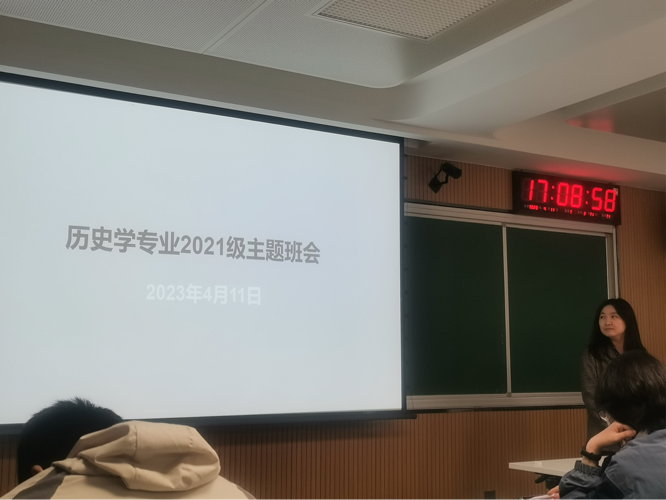 2023年4月11日下午17时, 21级历史学专业于逸夫楼108教室开展4月主题班会,班会由班长袁仁斌同学组织进行,班主任陶莎老师参与指导。在班会上,陶莎老师首先向同学们了解对本专业学习和论文写作的疑问,对本专业常用的校内、校外数据库进行介绍,并分享了文献综述检索和写作的方法与技巧。随后陶莎老师对本班同学们的未来学业规划和职业规划进行询问,向同学们讲述了老员工考研和就业的现状,并对同学们的生涯规划提出相关建议。本次班会内容以陶莎老师的讲述和介绍为主,对同学们关于本专业的疑问进行了详细的解答,增进了同学们数据库的熟练度,提高了文献综述写作的技巧,并更好地激发了同学们的学习和对未来规划的积极性。