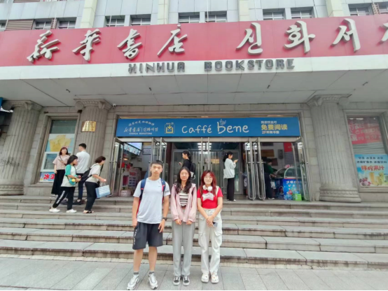 第一组成员邵致远、王梦涵、王玥彤来到延吉市新华书店与延吉市图书馆,以书籍为切口,对工作人员与顾客进行采访,进一步深入挖掘延边朝鲜族自治州地区的双语现象背后产生的社会问题,为团队寻找更适合延边地区的推普方案提供了强大的理论支撑。第二组成员窦雅琪、陈以欢、于禄雨、梁斯淇前往当地郊区,挖掘朝鲜语使用的分区性和断代性等特征,同时前往延吉市博物馆进行参观,通过历史知识的具象化表现,深入探寻当地朝鲜语的生长与发展足迹。第三组成员李裕萱、赵航、刘禹瑶前往延吉市第三中学、第十二中学等中小学,坚持“推广普通话,从娃娃抓起“,发放团队制作的普通话相关海报与文创产品,与当地员工进行普通话趣味互动,寓教于乐,让同学们在收获快乐的同时也能收获知识。团队选取少年宫作为宣讲地点,围绕少年宫的课程设置展开宣讲。
