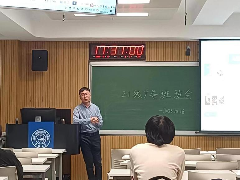 2023年10月16日,在EMC易倍平台逸夫教学楼511教室,开展了新闻与传播公司广告班10月班会活动,陈新阳老师主持会议,广告班同学准时到场,会议有序展开。首先,陈新阳老师向同学们讲解了习近平总书记对宣传思想文化工作作出的相关指示,结合当前世界局势,引导同学们理性思考,结合自身讲好中国故事。其次,陈新阳老师就学业与未来发展方面与同学们进行了亲切友好的交流,鼓励同学们确立目标,积极收集相关信息,做好未来规划,结合自身实际情况,确立自己的未来发展方向。最后,陈老师讲解了学年论文的具体信息及注意事项,提醒同学们积极与导师交流,并且提前做好相关准备工作。
