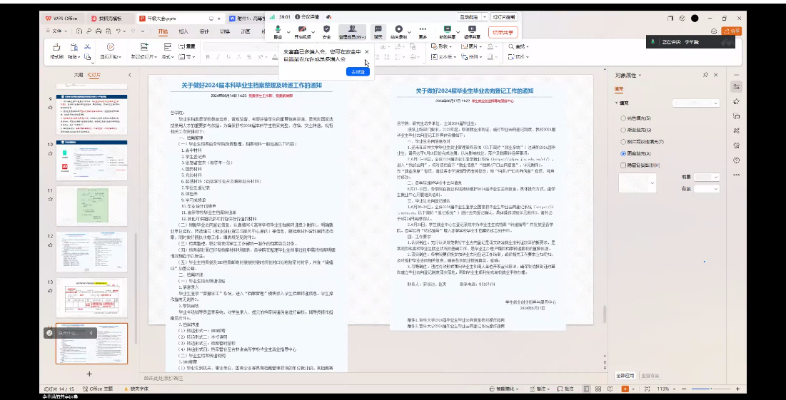 两次年级大会主要就毕业相关事宜进行介绍和答疑,涉及就业系统和登记系统、助学贷款还款、党组织关系转接、团组织关系转接、员工档案调动、学位证与毕业证发放、档案校对、毕业晚会、毕业典礼、文明离校离寝、毕业年级考风考纪、高考诚信教育等相关问题。其中,李芊满老师特别强调了组织关系转接和员工档案邮寄的重要性,详细介绍了相关程序及过程中可能存在的若干问题,针对不同员工的具体情况进行了分类说明。答疑环节,老师结合以往工作经验对同学们提出的各类问题进行了详尽的解答。最后,李芊满老师祝福2020级所有同学毕业快乐,未来一切顺利。