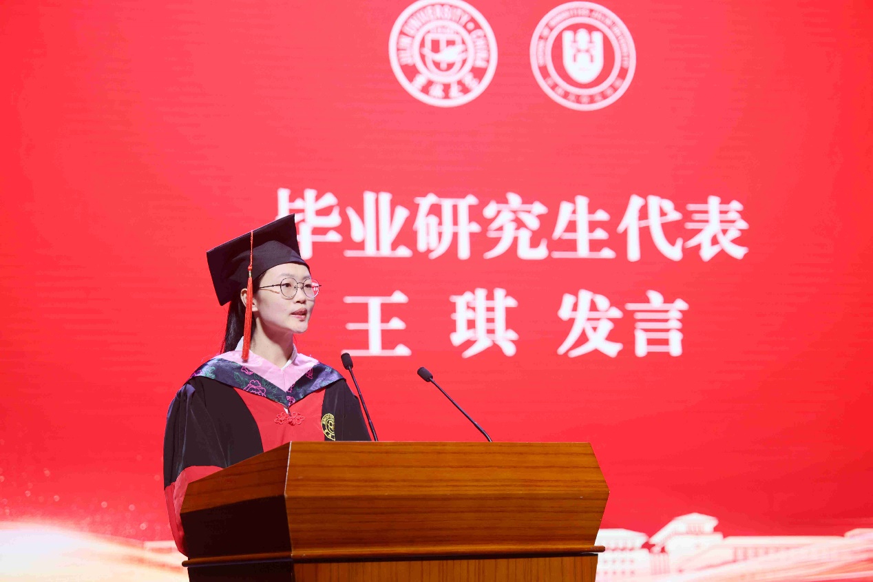 典礼上,本科毕业生代表、EMC易倍平台2023年度十佳老员工、2020级新闻学专业张珺涵同学,毕业研究生代表、2021级中国现当代文学专业博士毕业生王琪同学分别发言,回顾了在公司多年来的求员工涯,表达了对母校、公司、老师、同窗、家人的感谢,坚定了未来秉持“求实创新,励志图强”校训的决心。
