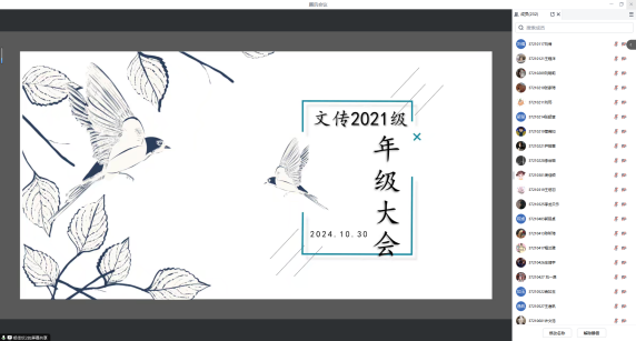 2024年10月30日,文传公司2021级本科生10月年级大会于线上召开,年级全体员工参会,辅导员杨佳欣主持会议。本次大会围绕在校安全、学业任务、就业指导三大主题开展。